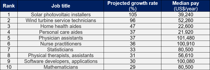 Top 10 fastest growing jobs in the US: