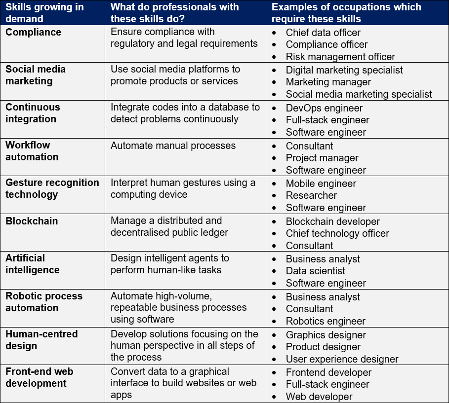 Skills rising in popularity